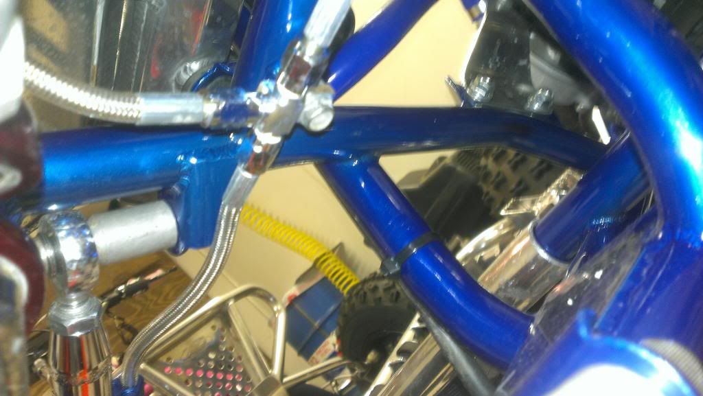 I figured that.  I will have to make a bracket for it to work.   If I mounted it that way, the hose to the front master cylinder would point forward towards the bumper or backwards towards the pipe.  i assume it needs to point strait up?   And if I mount the T in that spot, the front hoses out to the calipers will be WAY too long!! I would have to make a loop somewhere to take up the extra.  Do they get wider than this thing?  I know it is a narrow frame but with +4 arms it should be pretty darn wide.