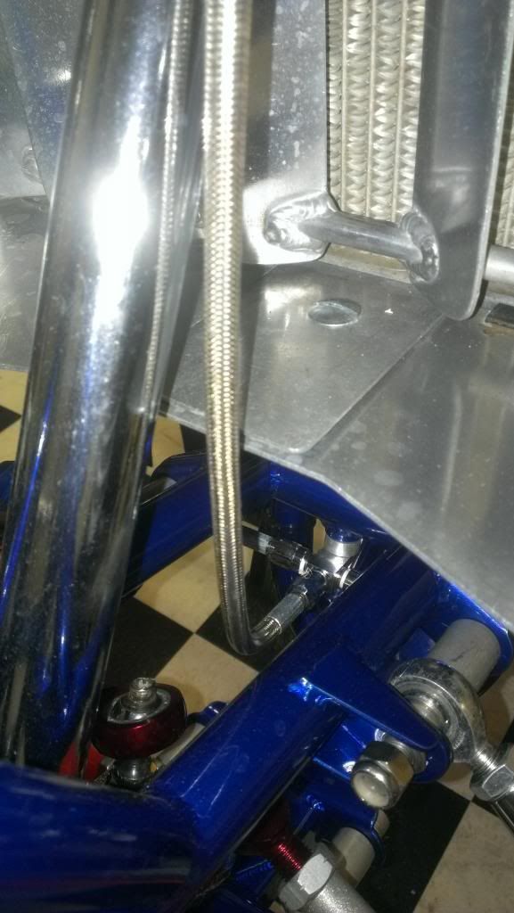 Got it mostly figured out now.  Put brake hoses on a arms with alba clamps (which I will not recommend to anyone) and then noticed that the line going to the front master cyinder was too short. SO I had to make an L bracket to move the hose T up higher and point it strait up.