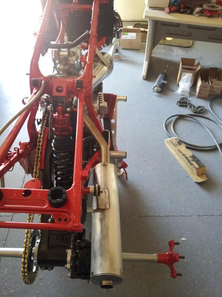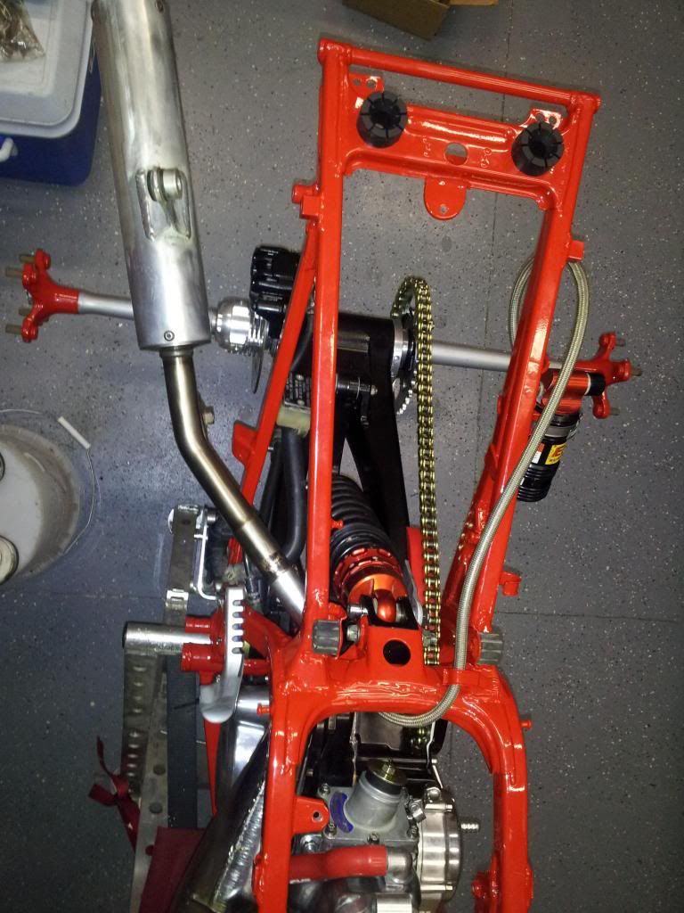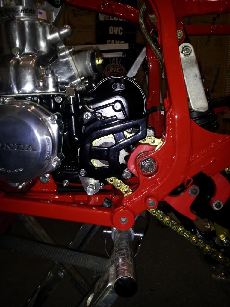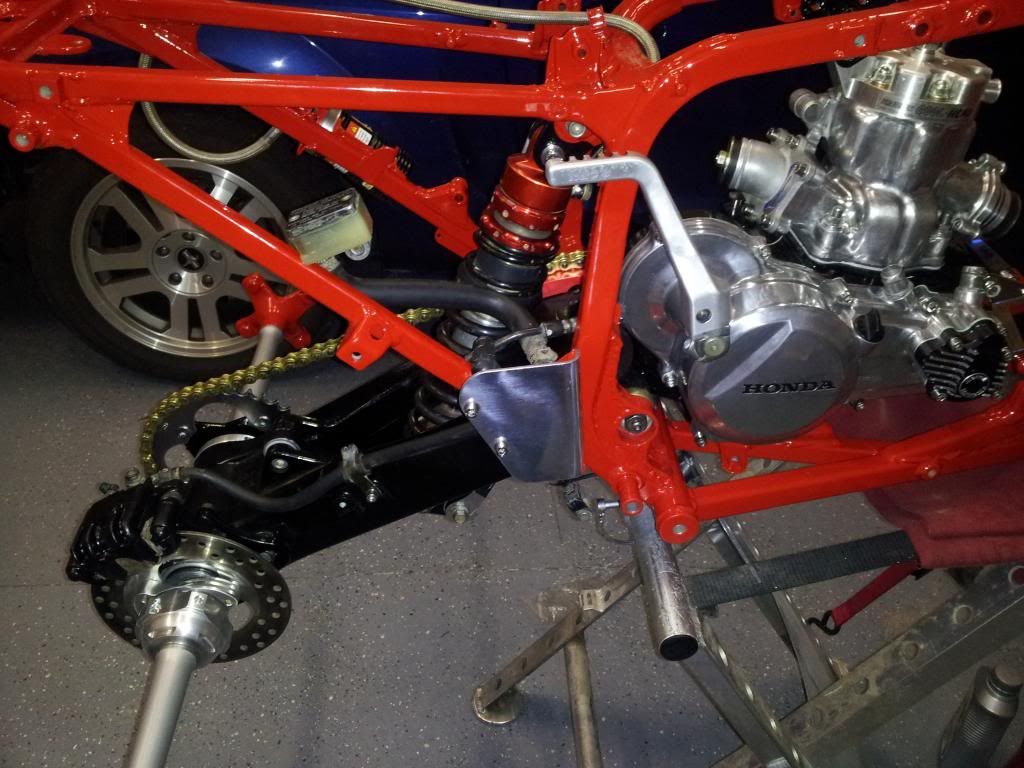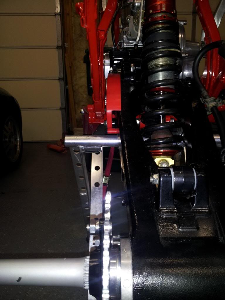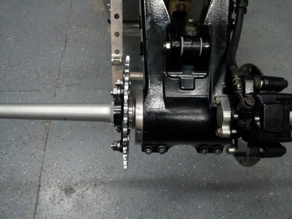 In order to relocate the engine back to the stock position and remedy the sprocket alignment issue, I had the rear sprocket hub machined and a spacer made to take up the space on the other side.