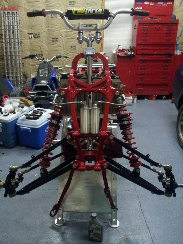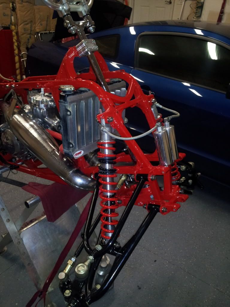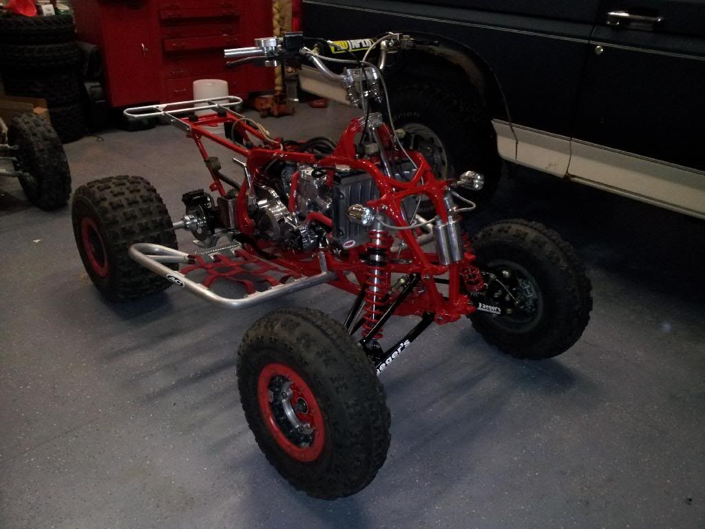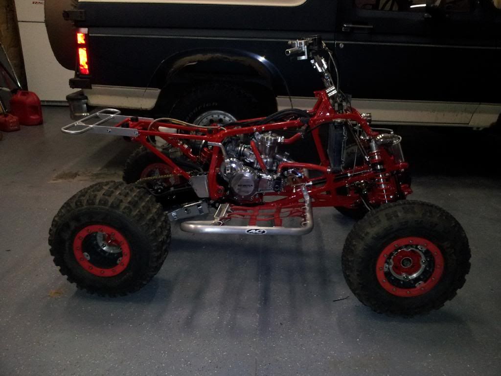 I think they could have to do with using the trx450 rear end. I bought a complete 06 setup and it seems like I'll need to mess with the linkage and shock mounting location to get the geometry as close to the original Honda design as possible. I could and might be completly wrong but that's my guess...NICE BUILD!