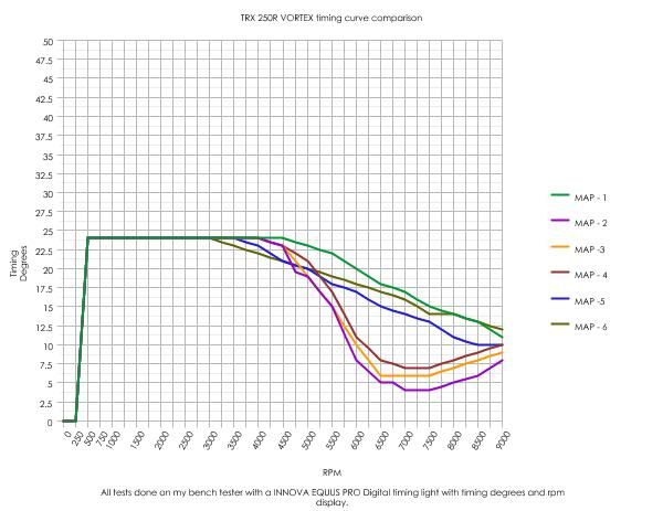 Basicly any year CDI, TRX or CR can be adjusted on the dyno at peak rpm to make the exact same HP, but by changing the curve you can build power before and after peak.