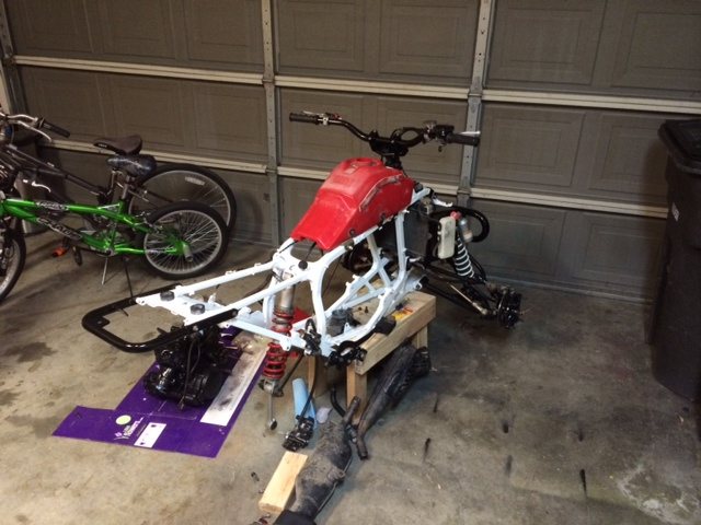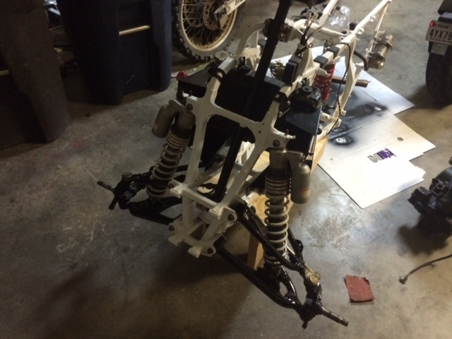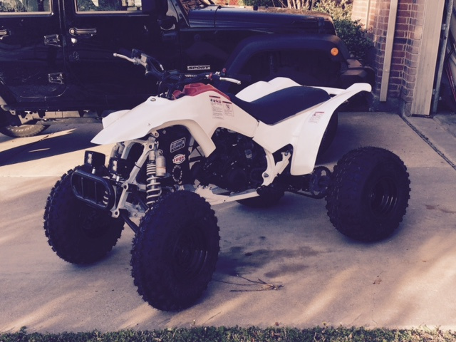 Have not posted in a while but the R is together and running nice. Only this is the stock a arms and borrowed shocks are not a good combo. Plus my rear shock decided to puke its oil out after first ride. So rear is off to be rebuilt and I am looking for +2 arms and shocks.