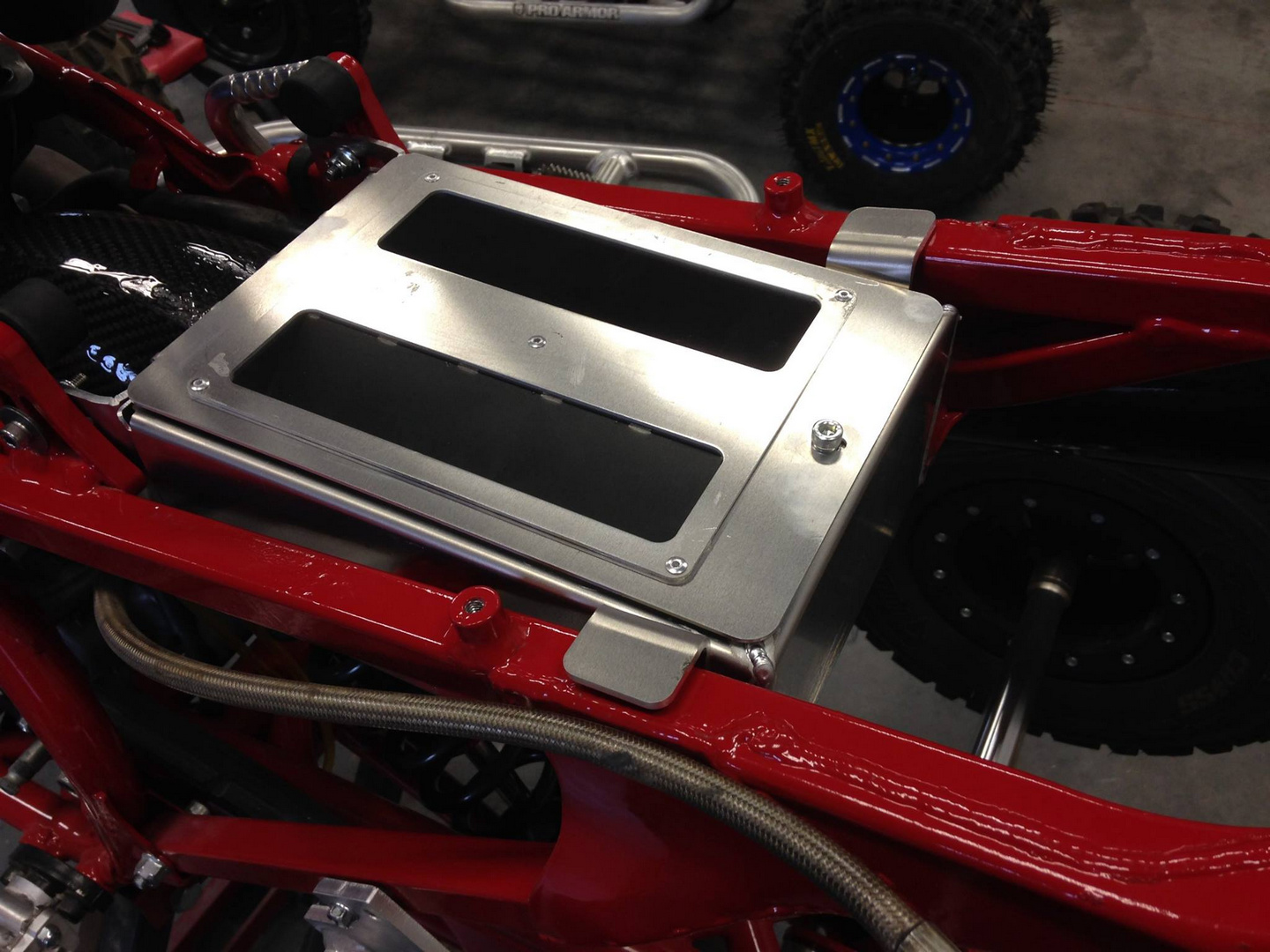 tbone, originally yes I was going to follow the same train of thought with the 250r airboxes.  The problem is the subframe rails are angled in, so part of the box has to be below the subframe and the rest has to fit in between.  Unless I chop it up and have a ton of welding...  I decided to keep it somewhat simple.  What I can do is offer a package so if you want to run an eliminator style, you'd just have to swap to the bracket.  I tried to do a similar lid, but the lid can't be flat like I was able to do on the 450r.  So far the R has been far more complicated to do an airbox for, even more so than my YFZR setup....  however, I'm not complaining, I like the challenge.