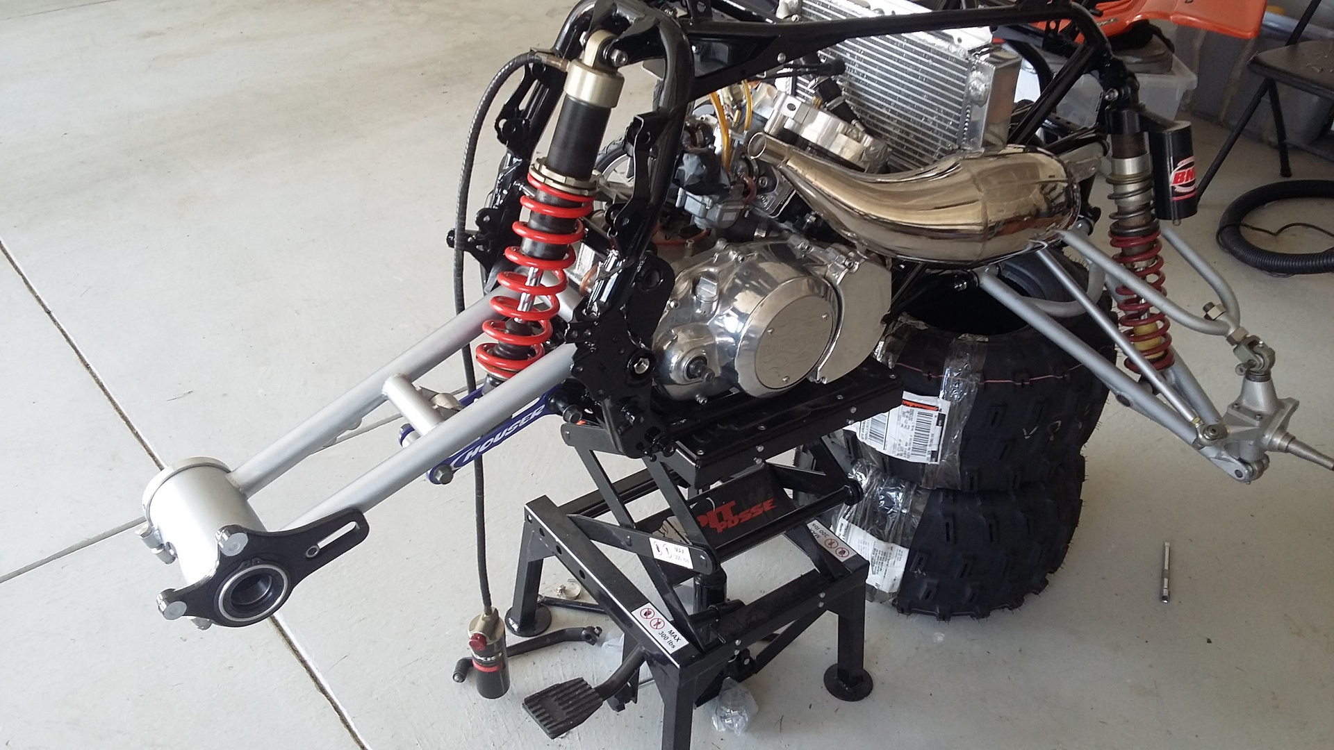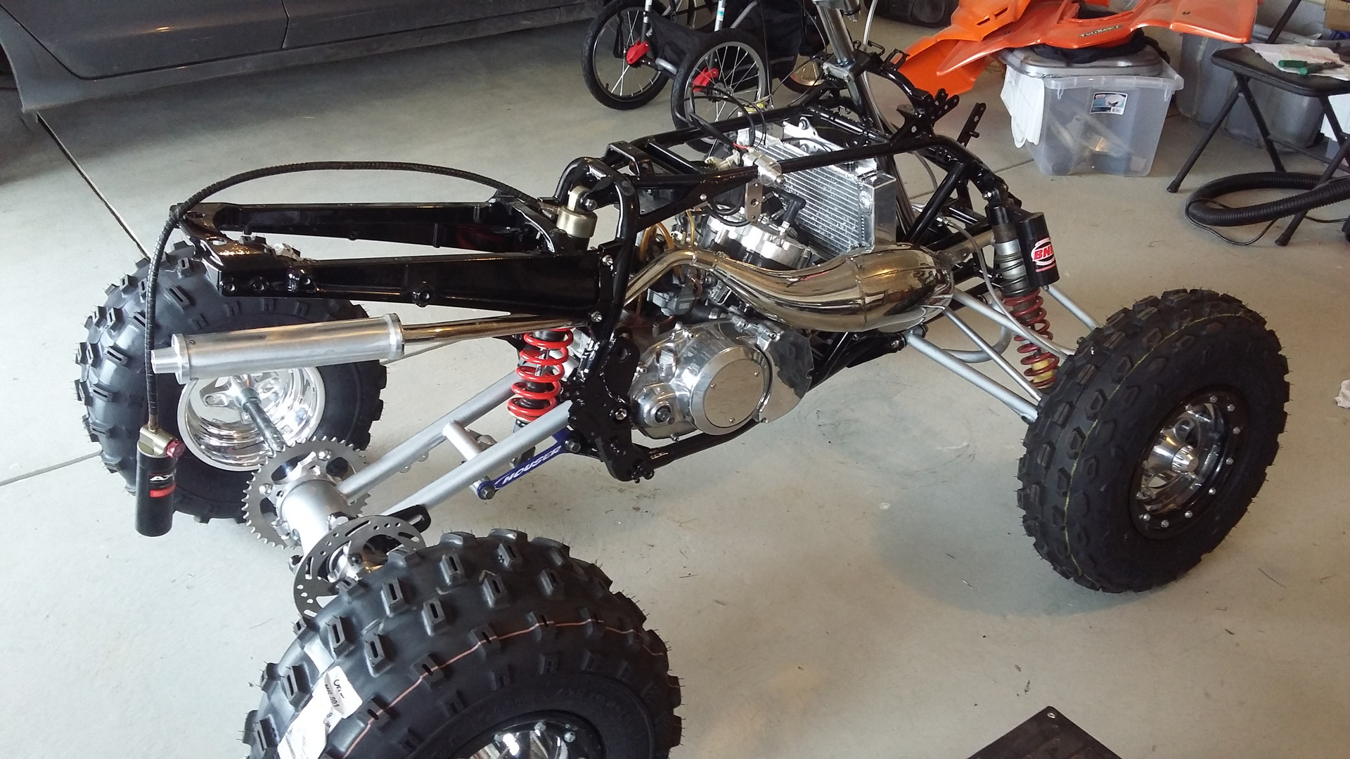 I have only worked on one Banshee with a two into one exhaust system and countless number of Banshees with the Trinity one carb into two cylinder intake manifolds.