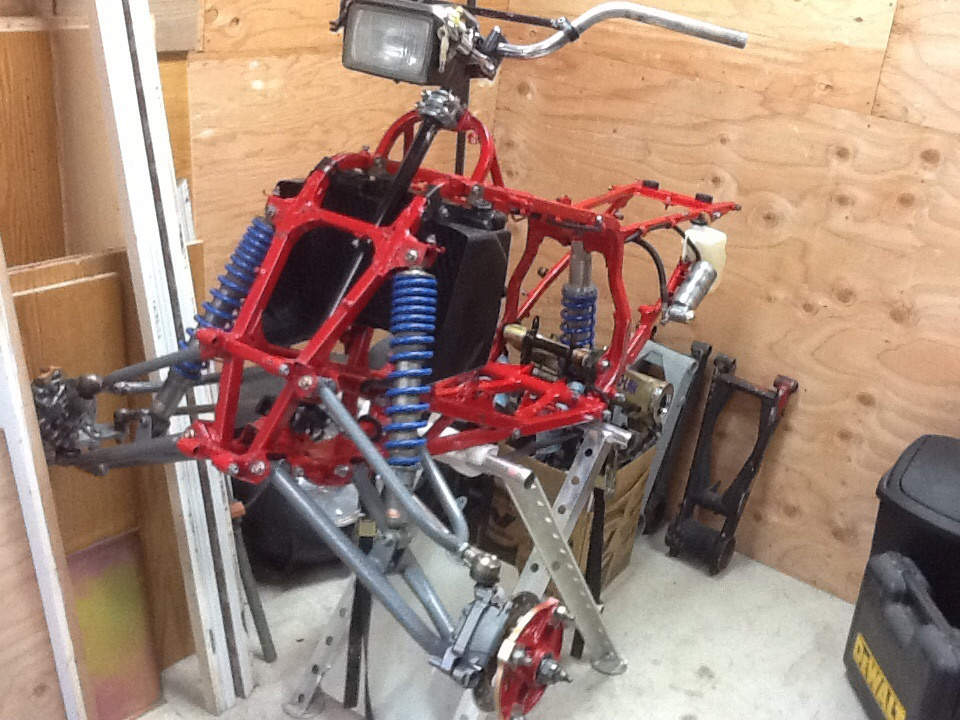 We picked this 86 up 2 years ago from the 2nd owner. It was last tagged in 05 & just sat in a garage covered in sand & years of grime. Doing a basic stock rebuild & left all the original coatings in tact because they were in good shape & I want this to be a rider & not a blingin dune bike like mine. It's a pain to keep everything shiny. The engine, swingarm & a-arms have been off this bike before, other than that I'm the first one to ever completely tear it apart & turn it into a lifesize exploded view. It's a nice survivor: