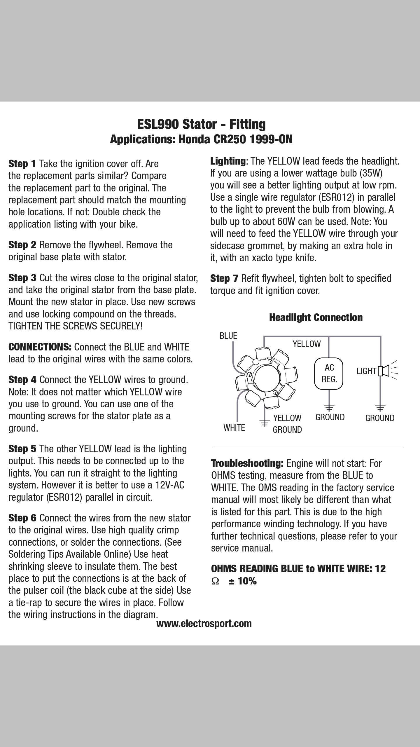 Maybe I'm wrong, but I am understanding that the lighting coil is not grounded to the stator plate. I get this from step 4 in their direcions saying use mounting plate screw as ground.