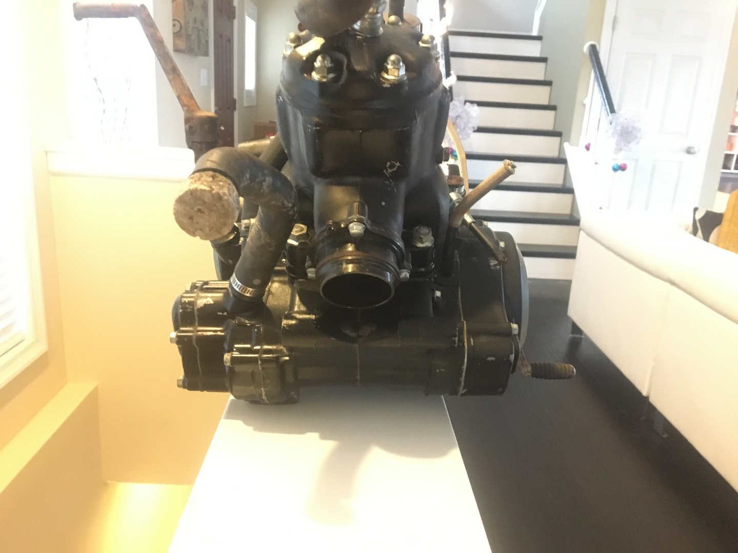 This motor is brand new and never fired. everything is exactly how it was when cut from the bike. This engine was stored in a unconditoned barn so there is some rust on the clutch arm, carb, shift lever, and kicker. The previous onwer used some sort of lubricant that was sprayed in the cylinder for storage. The cylinder walls looks perfect with all the factory cross hatch and no rust. The paint has fade and some scrapes but still looks great. I had intentions of running this motor but i figured someone doing a restoration or just wanting to collect it could have better use for it than me. Im asking $1600 obo. If you need any more pictures or have any questions just let me know.