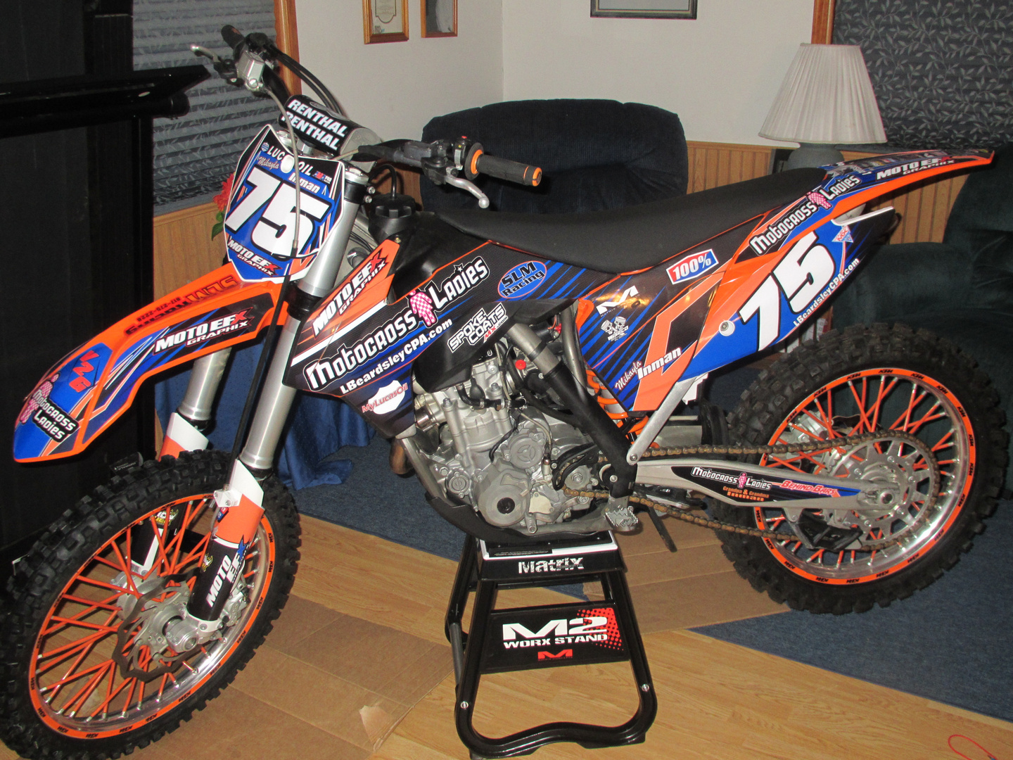 Hello, my name is Mikayla Inman.  I am 15 years old and my goal in life is to become a successful professional motocross racer.  I began my career at the age of five, riding a Honda CRF 50 in the 50cc Trail Class my first year of racing.  At the end of the season I was the Super Series Champion in Southwest Michigan and 7th in District 14.  The following year I continued to ride in the 50cc Trail Class and finished as Super Series Champion once again and increased my District 14 position to 6th place.  I rode a KX 65 only briefly for one season and moved on to a KX 85 in 2008 where at the end of the season I finished 3rd in the 85C class, 12th in the Michigan Mafia Championship Series, 12th in Las Vegas at the National Amateur Arenacross Finals, and 22nd at Loretta Lynn Regional.  This year was a good building year for me to experience a number of national events and for only being 9 at the time, I believe I did quite well.  In 2009 I finished, 3rd in the Grattan Raceway Series, 5th in the Midwest Regional Amateur Arenacross, and 12th overall at the Amateur Arenacross Nationals in Las Vegas.  By 2010 at the age of 12 I moved up to a KX 100 and rode in both the Women’s Junior and the Women’s Senior classes.  I finished 1st in the GLMX Michigan Mafia Championship, 3rd in the Great Lakes Championship Series, 2nd in the Amateur Arenacross Northern Region, 4th in the Amateur Arenacross Eastern Region, and an overall 7th place finish in the Amateur Arenacross National Finals in Las Vegas.  This past year I have matured greatly in my racing, establishing small goals to reach my main one.  Working out physically, practicing every day on the track my dad built for me out back, and watching videos of races and reading magazine articles to help me improve mentally and physically.  My results for the season have improved.  In 2011 I began riding the KX 100 and a Suzuki 125 (in the women’s senior class).  I did not race much the beginning of the first championship as I practiced more and honed in on my abilities.  The first round left me in 6th place for the Michigan Mafia Championship series, however, by mid summer I finished 2nd in the Great Lakes Championship Series, 1st in the east division of Amateur National Arenacross and podium in 3rd place in Las Vegas for the Amateur National Arenacross Finals!!! I also received the Presidential Fitness Award this year.  Amateur Arenacross begins again in November 2011 where I will be competing in the Women’s Junior class on my KX 100 and in the Women’s Senior class on my Suzuki 125.  My goal is to qualify for the Amateur National Arenacross Finals in Las Vegas in the Central Region in both classes.