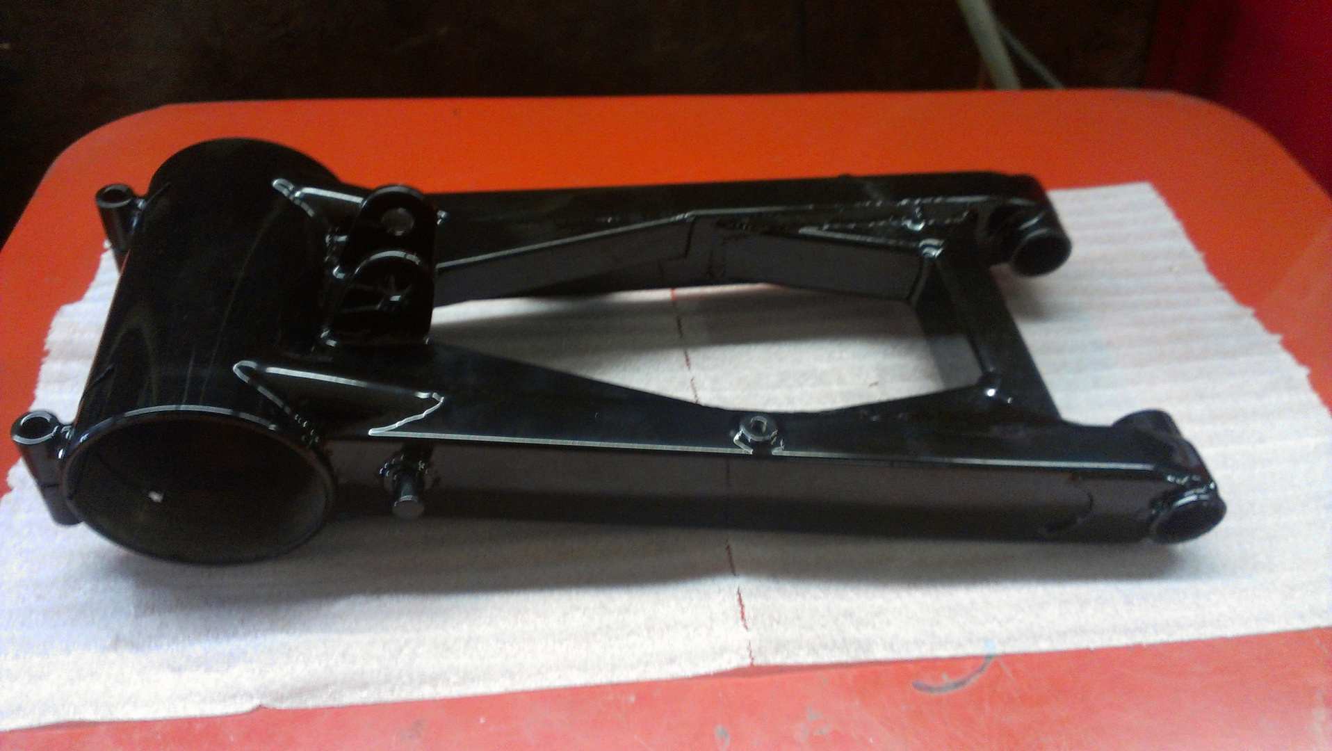 I almost bought it Jon, but I'm gonna wait and do either a no link or a cr250 link(whatever darn setup LSR uses instead of cr500). My LSR TT frame has a no link style top shock mount, but then has a linkage mount on the bottom(250r linkage fits it too). The PO of this frame just went ahead and ground down a rear shock to fit at the top. Must of worked pretty good cuz he won alot of races(yes he could ride). I have a -1 swinger i can use already. The back of pro peg nerfs have been cut off(with a flat aluminum plate rewelded) so a -3 will fit without rubbing anything. If this swinger hadn't been modded to the earlier style, it would already be mine. Good price tho and I'm still tempted, but I'll wait...