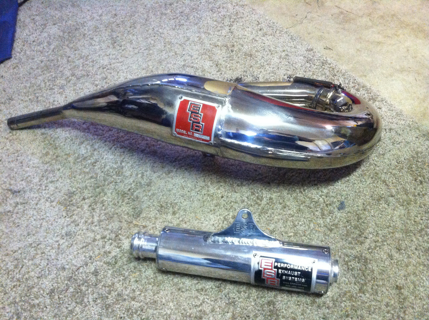 Any interest in this pipe/silencer combo? Has what look like water spots on part of the pipe I can't take off by hand but I'm sure a buffing wheel would work. One dime size dent under the red ESR tag.
