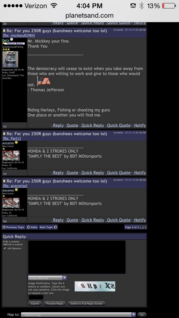 Ive only had one coc motor whitch was shit and I posted on both sites.  You bad mouth on the chat box and if they responded they get banned. No worries though. All I know is I was banned for life 2 hours ago, know I can post. Keep trying make your self look good.