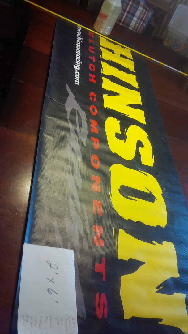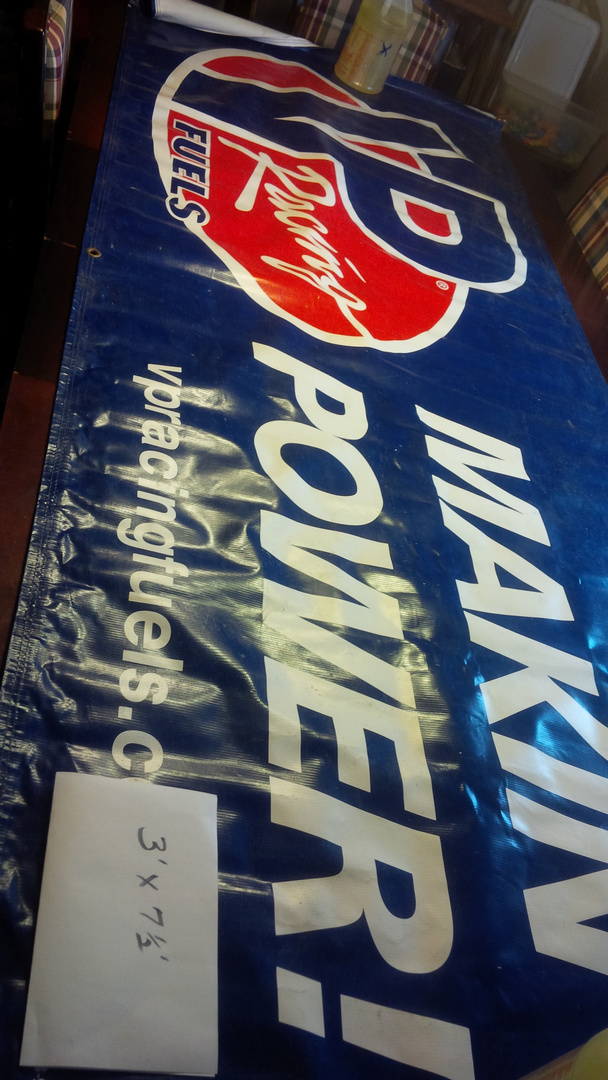 Unless listed, all banners are used condition, a little dirty from the dew & dust settling of the last Saturday night race, not torn.