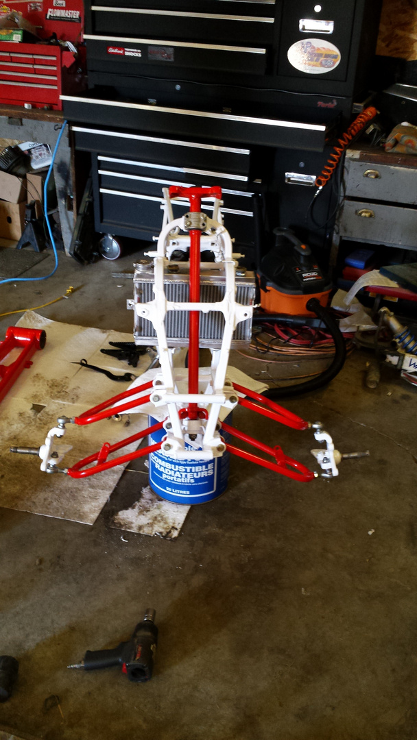 made a little progress today put the a arms and spindles, steering stem and Rad.