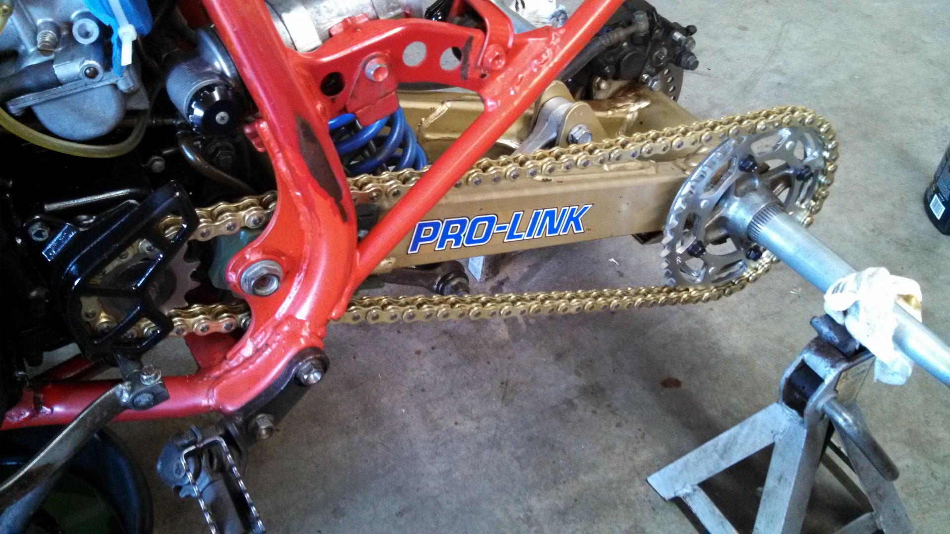 Stripped the shotty grey rattle can paint from the front wheel, stripper wouldn't touch the grey on the rears, so I'll live with it for awhile....