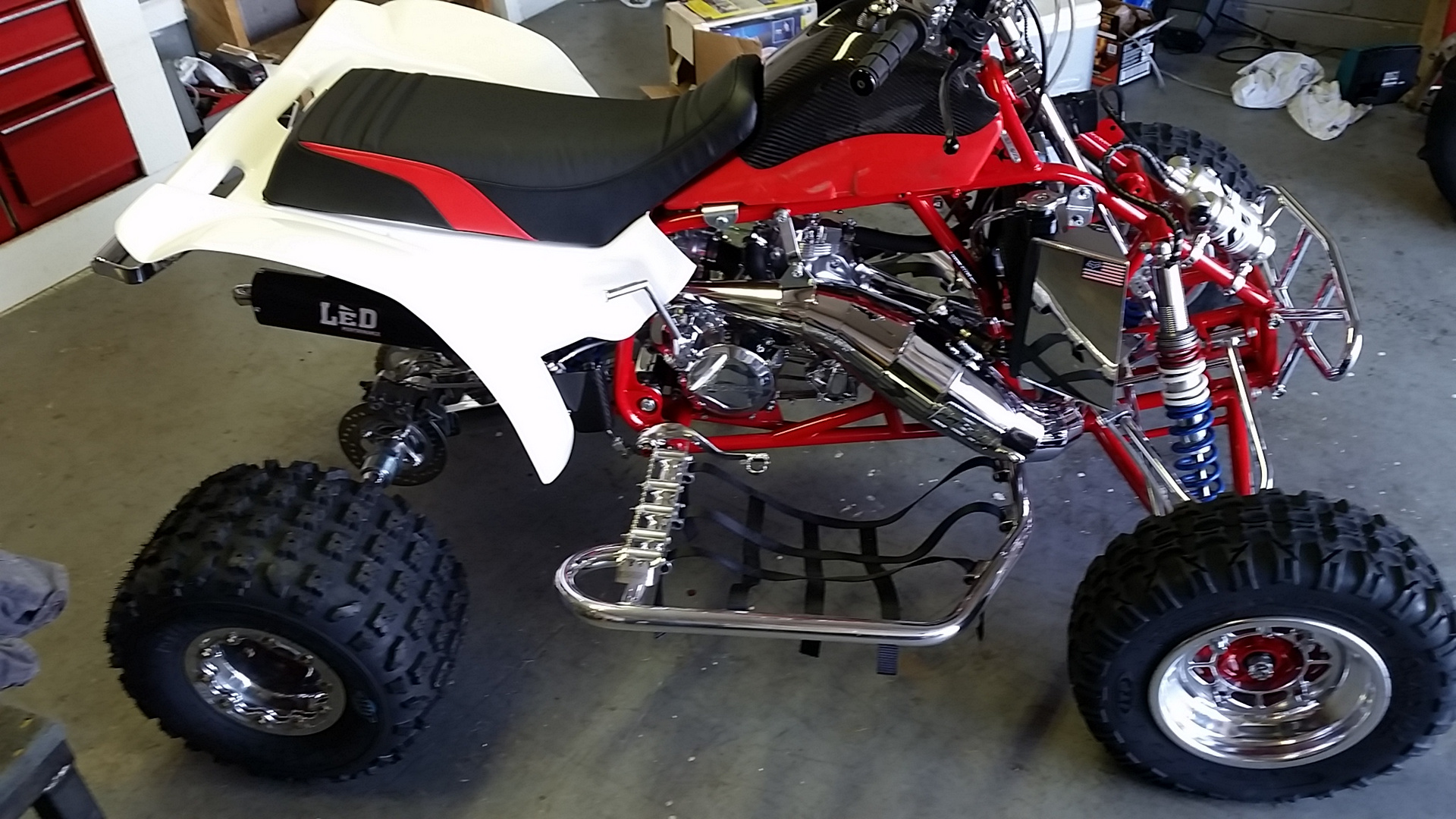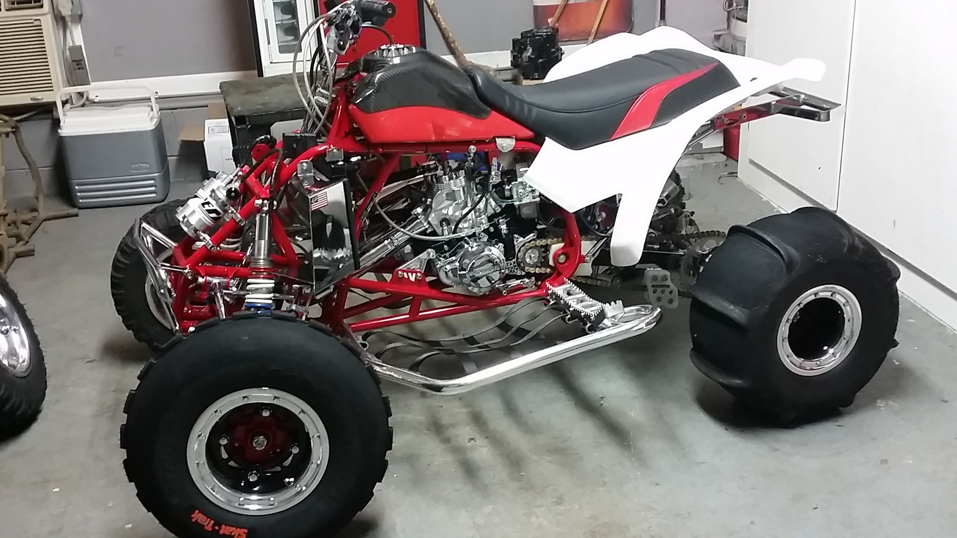 Here's where I'm at as of right now, I just have a few things to tighten and button up. She starts right up and purrs, just gotta do some break in and tuning this week. Front plastic will be here Monday and im going to make one last call to ssi about my graphics, they have had all my info for almost 3 months and I haven't even gotten a phone call or anything. I guess I'll call ftr or chaos graphics and see what they say.