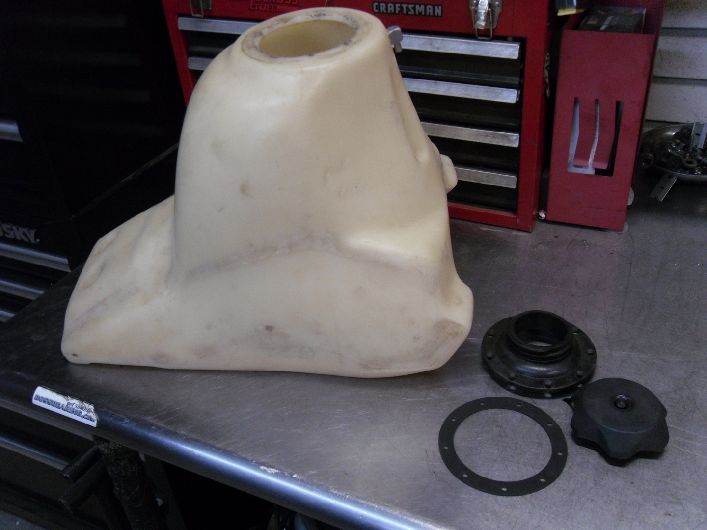 has wear make light tint of yellow to it but in good shape the gas cap is new never used have the bolts for the cap bought it last yr from roll 125.00 shipped paypal as a gift