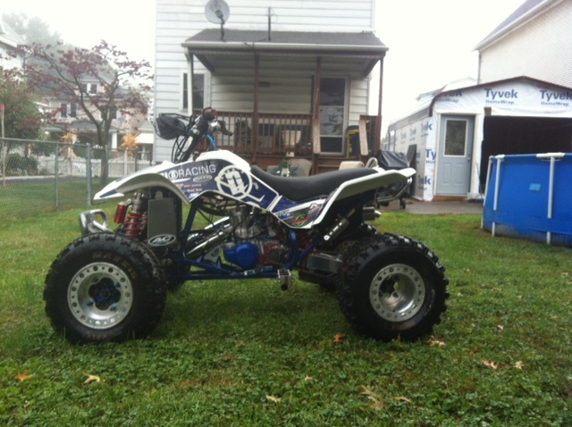 You will have to address that front suspension setup. It has 450 shocks mounted up with a lowering kit.