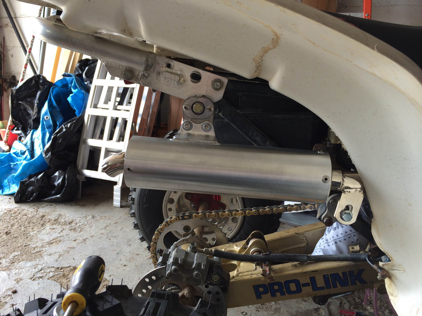 http://trx250r.org/attachment.php?attachmentid=5853&d=1406744644&thumb=1 08IRS I've always liked the way CT does their turn down. Plus it's cool when your bike is idling...pankpankpankpapankpankpapank and the dirt is making little dust swirleys in the dirt behind you. I hope it performs the way you like it. JamieG45 it sounds like you didn't have time to take pics. lol