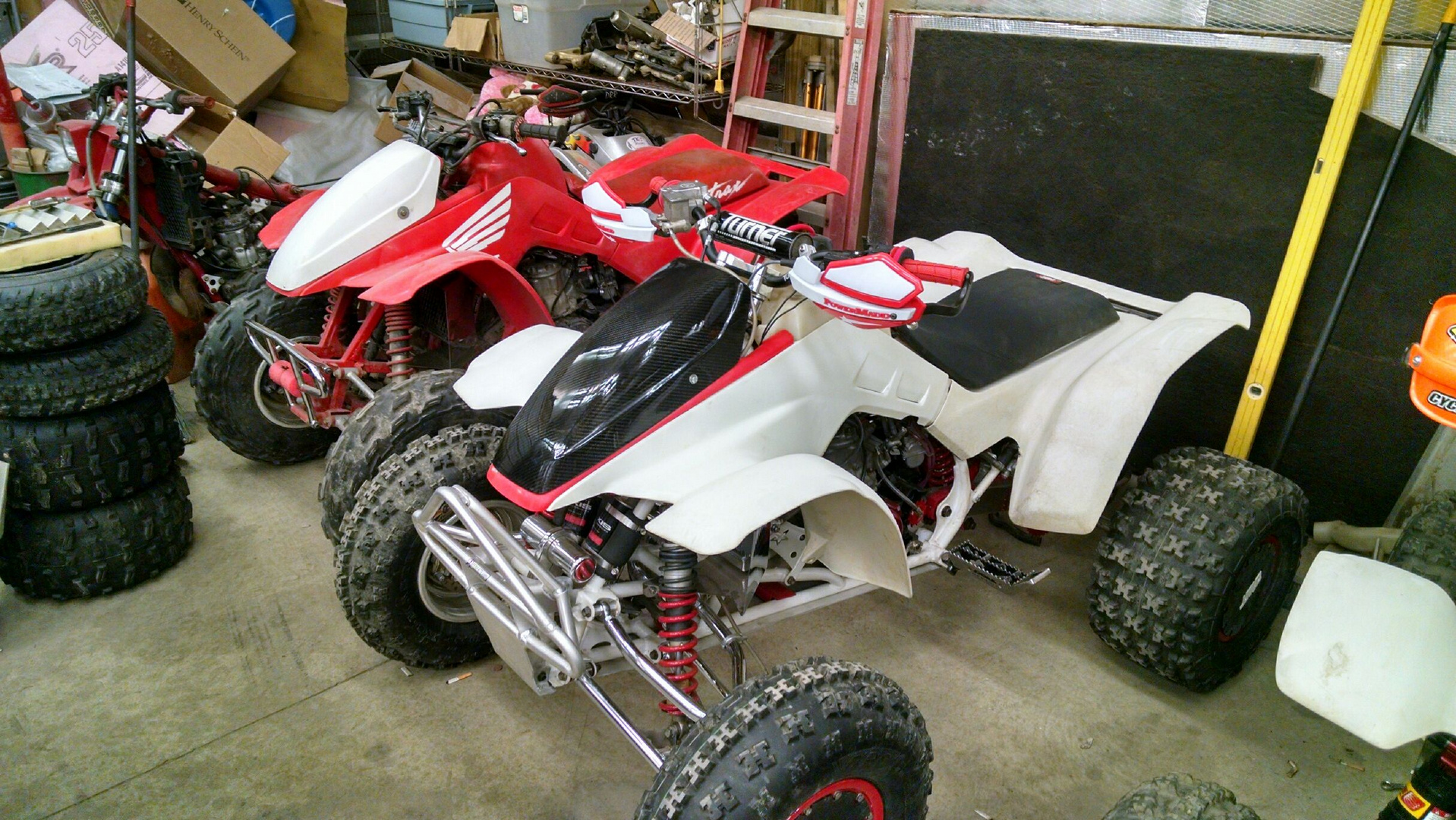 87 trx250r- ESR 310 (trx9 porting) trx5 pipe, 38mm A/S, +2 a-arms. works triple rates.