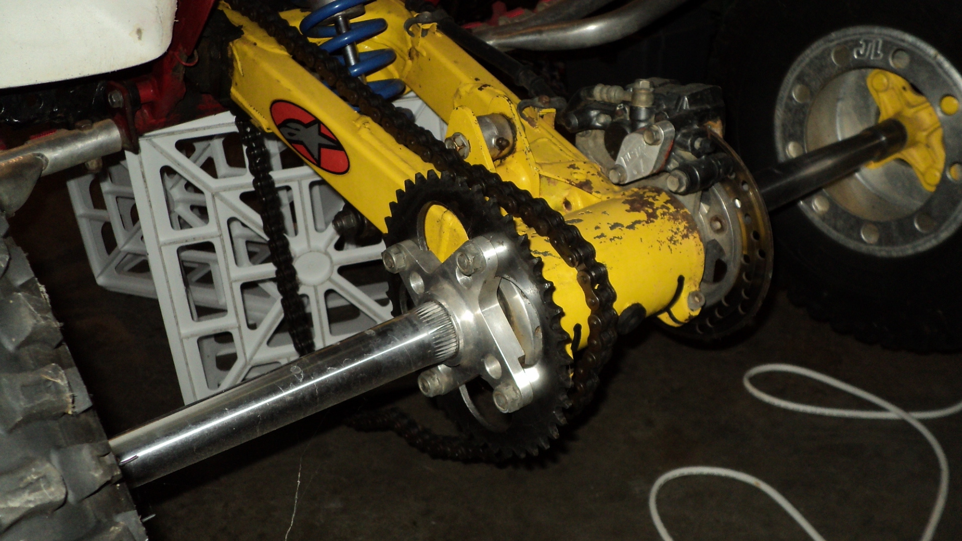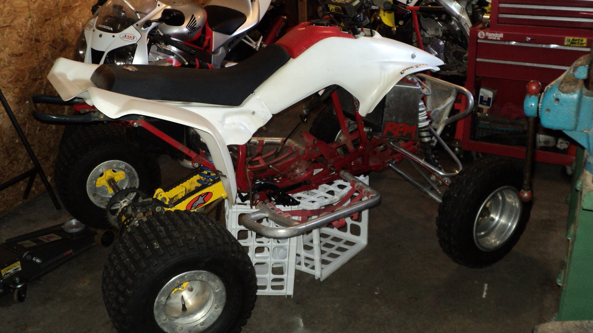Okay here we go...I have had my R parked in the back of the garage for about 3yrs now due to cracking the cylinder on some hard riding. Ill be dumping a rather ridiculous amount of money in this thing but I have gotten the fever to get this thing back in action. Its got some "who knows" a-arms...could be lone star...could be anything. I still have the ugly stock swinger and will be upgrading that. I did however put a good RPM axle, sprocket hub, and anti fade on it so I will be keeping those. Need to get ahold of Pumashine for some gussets and what not. Anyway, here is what she looks like now...along with some other pics you guys may enjoy.