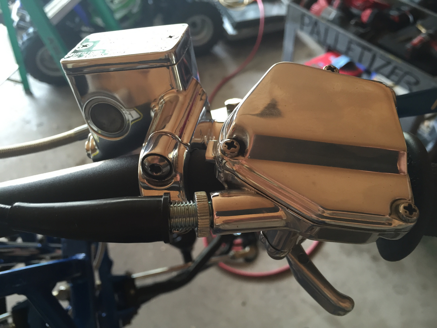 Polished thumb throttle and brake reservoir, both received rebuilds (my local polisher is the fn bomb)