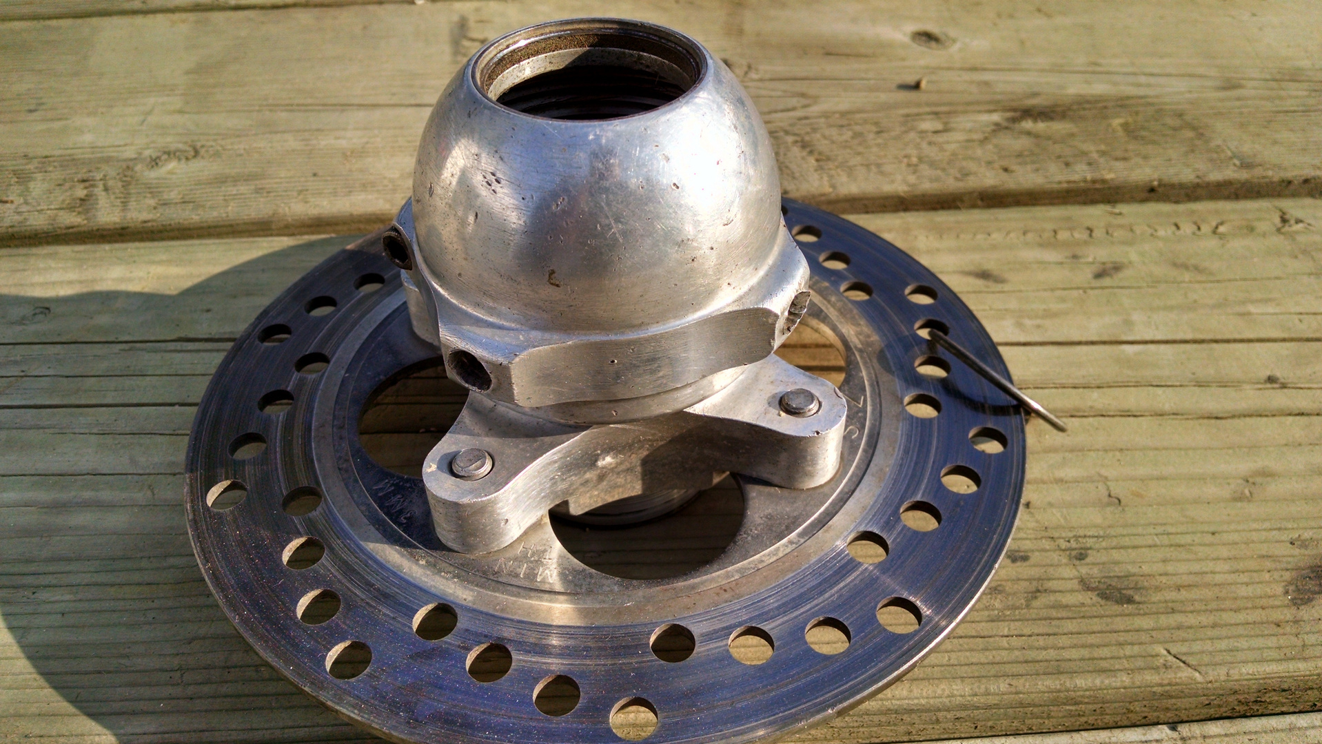 Houser stem, and antivibe bar clamp. Billet stem clamp. Almost perfect chrome on the stem.