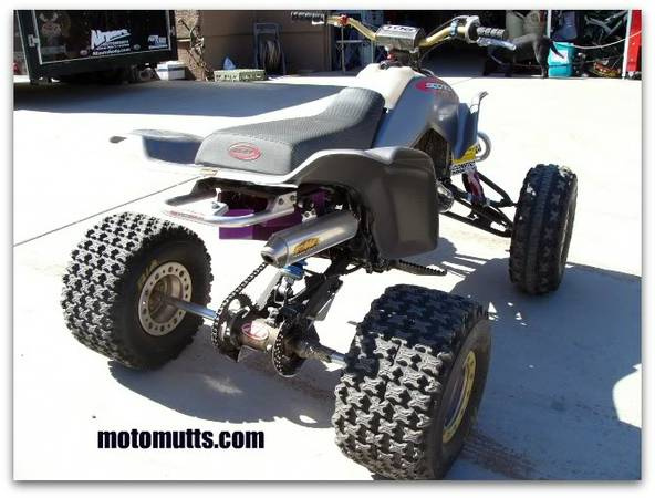 The second is has a brand new 330 ct build motor, whole motor was built everything in it is new. Arens Bros Racing frame. Laker plastics, Works triple rate shocks in front with remote res and an Ohlins rear shock with remote res. Air Stryker carb, extended A arms, extended swing arm, no link swinger, extended axle, CT pipe, stabilizer. He wont move past $4200