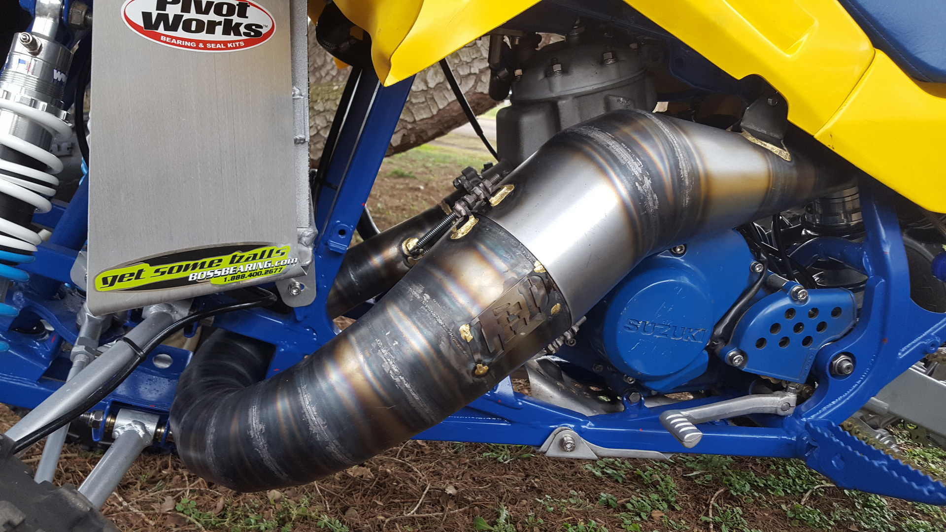 Thanks. I had a hard time making the cut in the fender for the kick starter, because the plastics are so damn nice, but it had to be done. The other side will need some trimming for the pipe to clear as well. Decided to go with the raw finish on the pipe, no chrome, I just like the look of the raw pipe. Hopefully I can keep it looking good for a long time. Nothing but waiting left now, Arlan expects it to be about a month before I get back. I'll post pics when I get it back, then a video after the first trip. Can't wait!